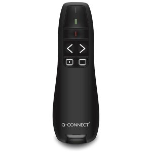 Bezdrátový ovladač značky Q-Connect s laserovým ukazovátkem a USB přijímačem Ukazovátko je vybaveno 5 tlačítky s těmito funkcemi: laser, stránka nahoru/dolů, start/pozastavení prezentace, celá obrazovka, …