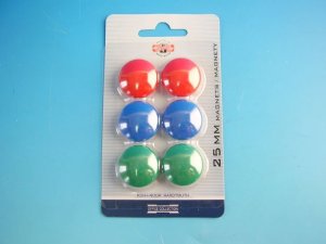 Sada magnetů v plastové barevné krabičce Mix barev Průměr: 20 mm Balení: 6 ks
