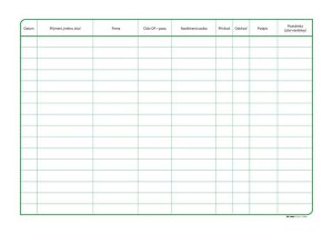 Kniha návštěv - nepropisující tiskopis - nečíslovaný - formát A4 na šířku - zelená obálka - blok 32 listů FormátA4 Samopropisovací:Ne Číslovaný:Ne Počet listů:32