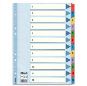 Kartonový bílý rozlišovač s vyztuženou univerzální perforací a barevnými rozlišovacími okraji vyztuženými fólií.