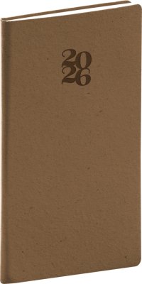Plánovací kapesní diář Balakon 2026 v provedení bordó, doplněný o stříbrný letopočet.
