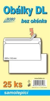 Obálky 20x110 mm, balení 25 ks. Balení klasických poštovních obálek ve formátu DL.