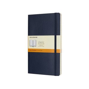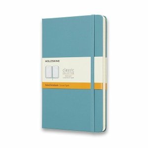Zápisník s měkkou, ve hřbetu šitou vazbou v kartonových deskách, obepnutý pružnou páskou proti samovolnému otevírání.