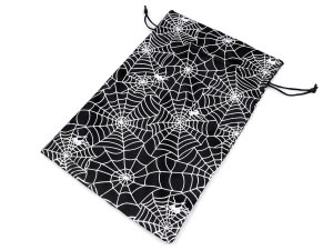 Dárkový pytlík s dekorem pavučin je vyrobený ze saténu.