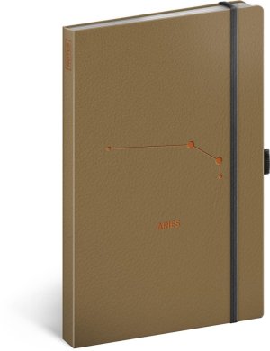 Linkovaný notes v pevných deskách s uzavíráním na gumičku, kapsou na drobnosti a poutkem na tužku. 172 stran na žlutém papíře.
