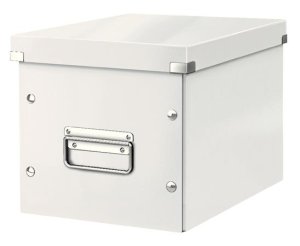 Čtvercová úložná krabice Leitz Click&Store WOW, velikost M Tvar kostky nabízí skvělou skladovací kapacitu.