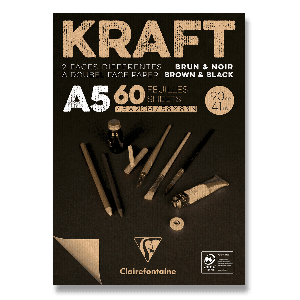 Blok Clairefontaine Brown & Black Kraft má 100% přírodní a recyklovaný papír vhodný na nejrůznější výtvarné techniky.