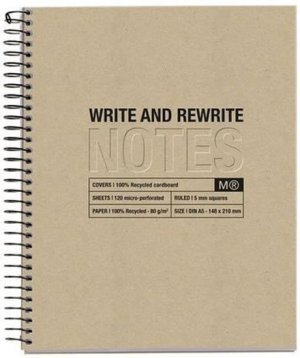 Ekologicky šetrný poznámkový blok z recyklovaného papíru v pevném kartonovém obalu s kroužkovou vazbou.