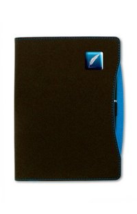 Trendy poznámkový blok v lesklých deskách z laminovaného kartonu s kroužkovou vazbou.