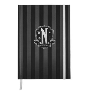 Zápisník v pevné vazbě s gumičkou s motivem ze světa Wednesday, oficiálně licencováno.