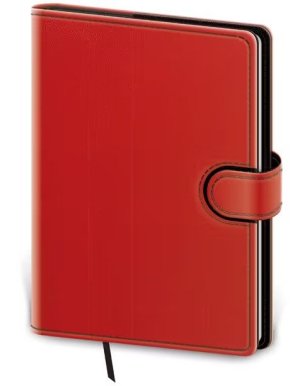 Moderní diář v měkké ohebné vazbě s kulatou příčnou gumičkou přes hřbet.