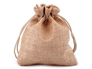 Dárkový pytlík připomíná svým materiálem přírodní jutu. [Uvnitř je podšitý netkanou textilií.] Snadno se uzavírá pomocí dvou stahovacích polyesterových šňůrek.