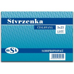 Blok A6 3x25 (75 listů) - blok Strvzenka originál, kopie stvrzenky a juxta stvrzenky Samopropisovací na uvedené tři listy Určení : účtenky, paragony, stvrzenky Číslované listy Bez děrování