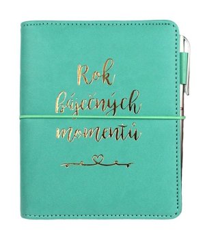 Elegantní diář s kroužkovou vazbou, praktickými kapsičkami na vizitky a propiskou.
