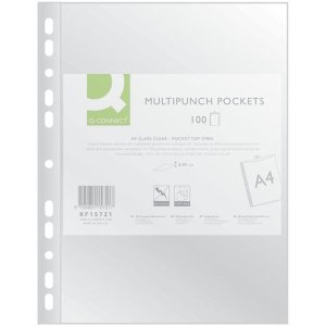 Prospektové závěsné obaly Q-Connect Typ U - otevřené shora Vnitřní rozměry: 21,2 x 30,2 cm Vnější rozměry: 23,0 x 30,5 cm Tloušťka: 75 mikronů Provedení: lesklé Formát: A4 Balení obsahuje 100 ks