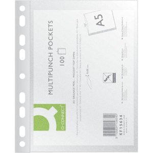 Obaly vyrobené z měkkého polypropylenu Antistatické a antireflexní s euroděrováním Formát A5 Tloušťka 50 µm Krupičkové - matné Balení 100 ks