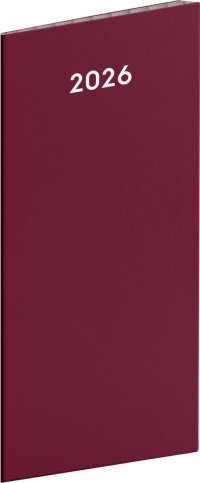 Praktický tenký diář ve vínové barvě s měsíčním rozložením se vejde opravdu všude.