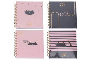Notes spirála o velikosti 15x21 cm - Kočka. 100 linkovaných stran. 4 druhy.