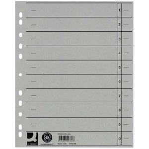 Bílý s šedými okraji a čísly Materiál polypropylen Počet děr: 11 Formát A4 Rejstřík: 1-12 Rozměry: 22,5 x 29,7 cm