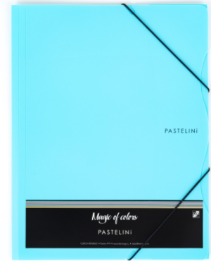 Kvalitní 3klopové desky k uložení a přenosu dokumentů v jemných barvách s fi xací dvěmi černými gumičkami.