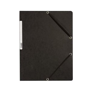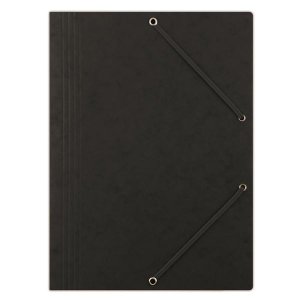 Prešpánové desky tříchlopňové Voskovaný papír 390 g/m2 Gumička v barvě desek Formát: A4 Rozměr: 235 x 319 mm Barva: černá
