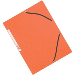Prešpánové desky tříchlopňové Voskovaný papír 390 g/m2 Gumička v barvě desek Formát: A4 Rozměr: 235 x 319 mm Barva: oranžová