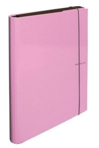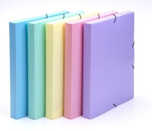 Kvalitní 3klopové desky k uložení a přenosu dokumentů v jemných barvách s fi xací dvěmi černými gumičkami.