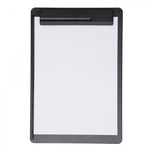 Psací podložka s kovovým klipem, vyrobena z extra pevné lepenky.