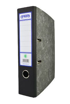 Klasické osvědčené provedení pákového pořadače, potah mramor černý hřbet s ražbou v provedení s radokroužkem, bez kovových lišt.Ekologicky šetrný výrobek.