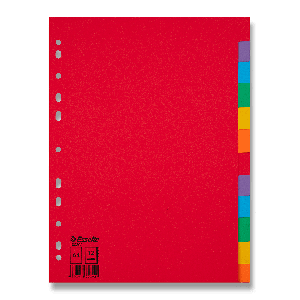 Kartonový bílý rozlišovač s vyztuženou univerzální perforací a barevnými rozlišovacími okraji vyztuženými fólií.