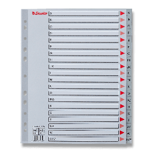Polypropylenový rozlišovač. Univerzální děrování, předtištěná titulní popisovatepná strana.