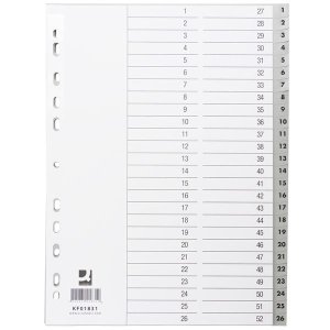 Plastové rozlišovače ideální pro organizaci a kategorizaci dokumentů v pořadači Materiál: PP Tloušťka materiálu: 120 mic Počet kusů v sadě: 52 (číslováno 1 - 52) Univerzální multiperforace (11 otvorů) …