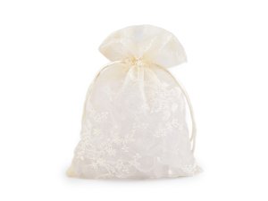 Dárkový pytlík z organzy zdobí strojová květinová výšivka.