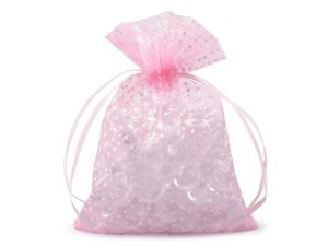 Dárkový pytlík z organzy zdobí potisk puntíků.