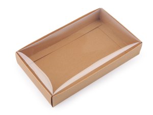 Papírová krabice natural má výřez ve víku s průhlednou fólií.