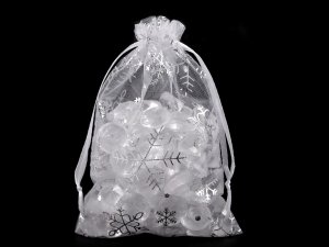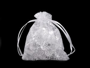 Dárkový pytlík zdobí metalický potisk vloček.