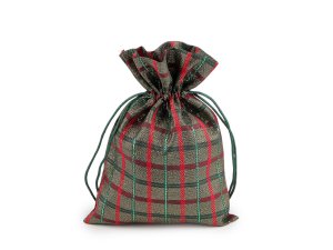 Dárkový pytlík s lurexem a károvaným vzorem má kvalitní provedení, působí elegantně a luxusně.