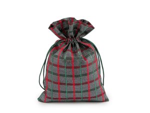 Dárkový pytlík s lurexem a károvaným vzorem má kvalitní provedení, působí elegantně a luxusně.