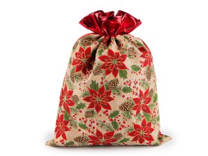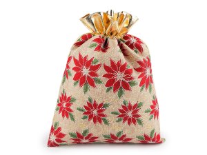 Dárkový pytlík se třpytivým potiskem vánočního motivu je ideální dekorací na Vánoce.