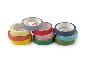 Sada barevných washi lepicích pásek, které můžete lepit na hladké povrchy jako je dřevo, plast, papír, sklo, atd.
