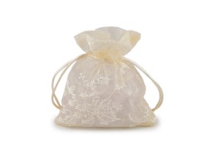 Dárkový pytlík z organzy zdobí strojová květinová výšivka.