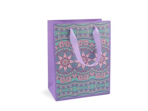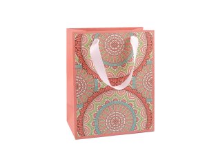 Dárková taška s motivem mandal je vyrobená z kvalitního pevného křídového papíru.