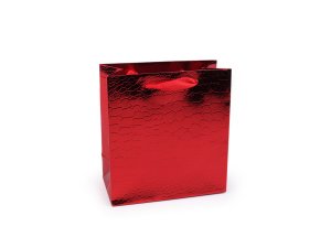 Dárková taška s efektním metalickým povrchem se strukturou krokodýlí kůže se hodí na zabalení jakéhokoliv malého dárku.