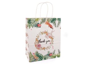Papírovou dárkovou tašku z obou stran zdobí obrázky a nápis "thank you".