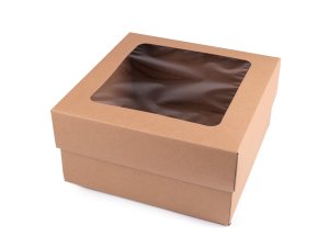 Papírová krabice Natural má výřez ve víku z průhledné fólie.