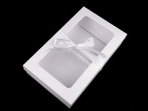 Krabička s průhledem a rypsovou stuhou je elegantním řešením dárkového balení.