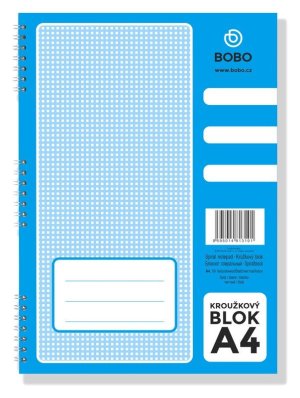Blok obsahuje 80 stran čtverečkovaného papíru v kroužkové vazbě.