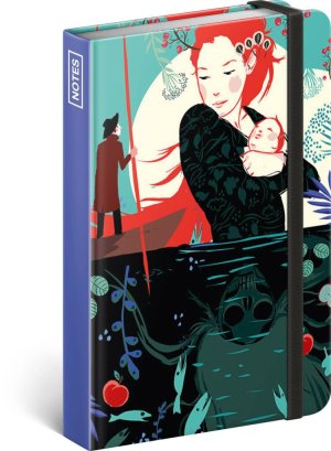 Linkovaný notes v pevných deskách s uzavíráním na gumičku a vnitřní kapsou na navštívenky v praktickém cestovním formátu.