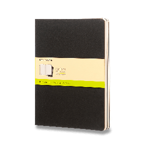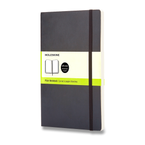 Zápisník s měkkou, ve hřbetu šitou vazbou v kartonových deskách, obepnutý pružnou páskou proti samovolnému otevírání.