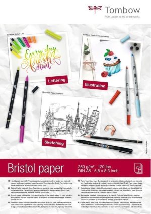 Kreslicí blok Bristol.Formát: A5 (210 x 148 mm), gramáž: 250 g/m?, 25 listů.Bílý, hladký papír s mimořádně vysokou opacitou.Hodí se pro tekuté i suché techniky: malování štětcovými fixy, finelinery, …
